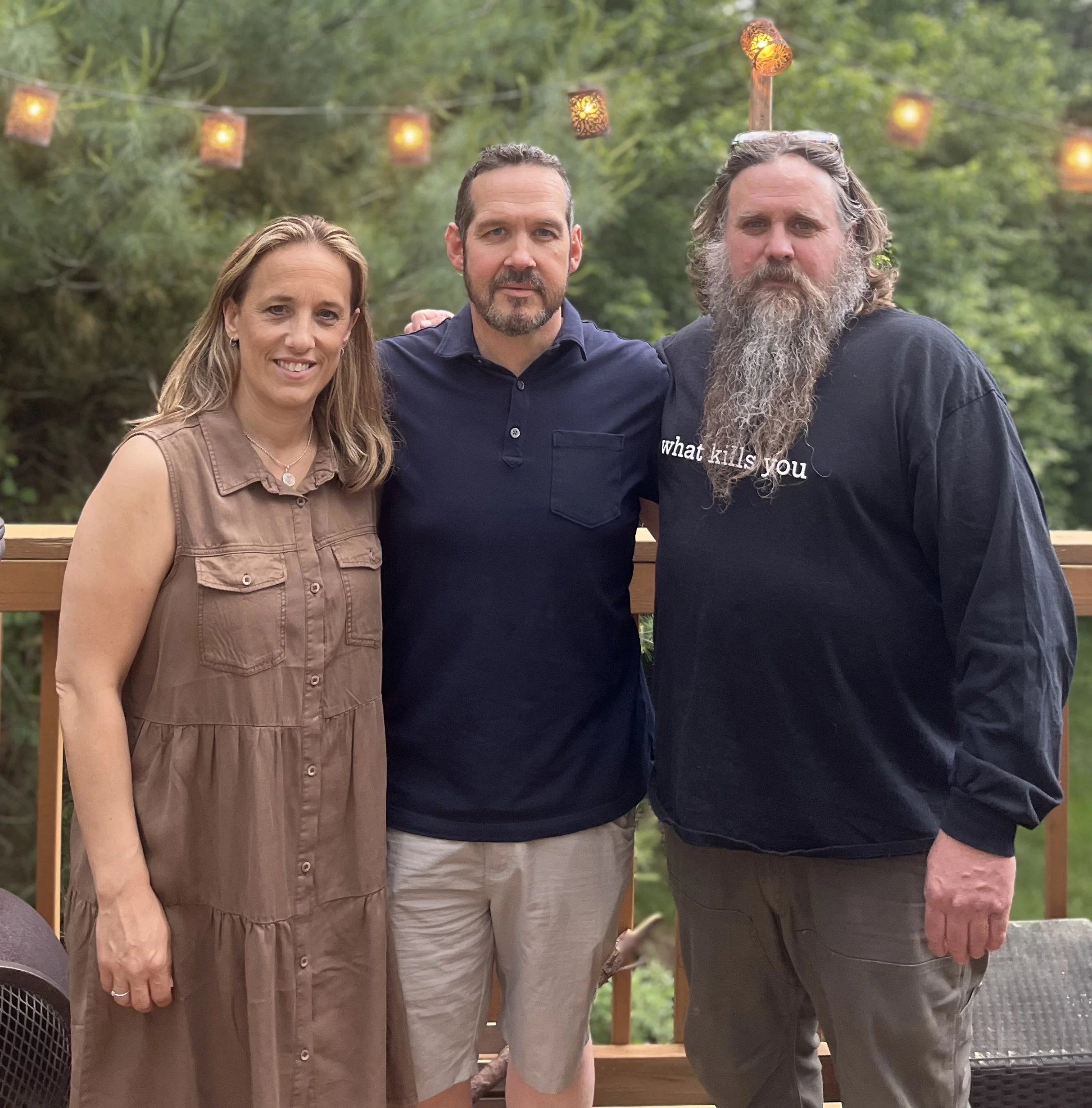 Enjoying one of their many fireside chats —- Heather, Kevin and Jon.